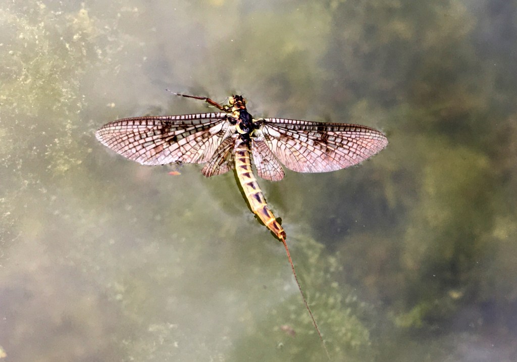 Mayfly, Olives and Alder flies are hatching all day but the hatch is most prolific around lunch time.
