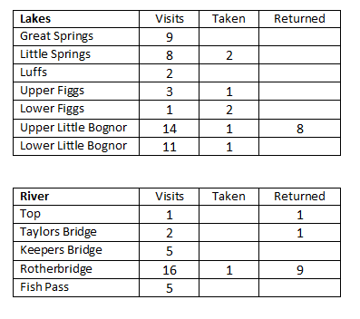 Members will be pleased to know that we cut the weed in Upper and Lower Figgs last week and will continue with Luffs this week. Quite a task but everything will look good and be ready for the trout when they arrive. As an approximate guide, looking at the weather forecast, it is hoped we will be able to recommence stocking mid October.