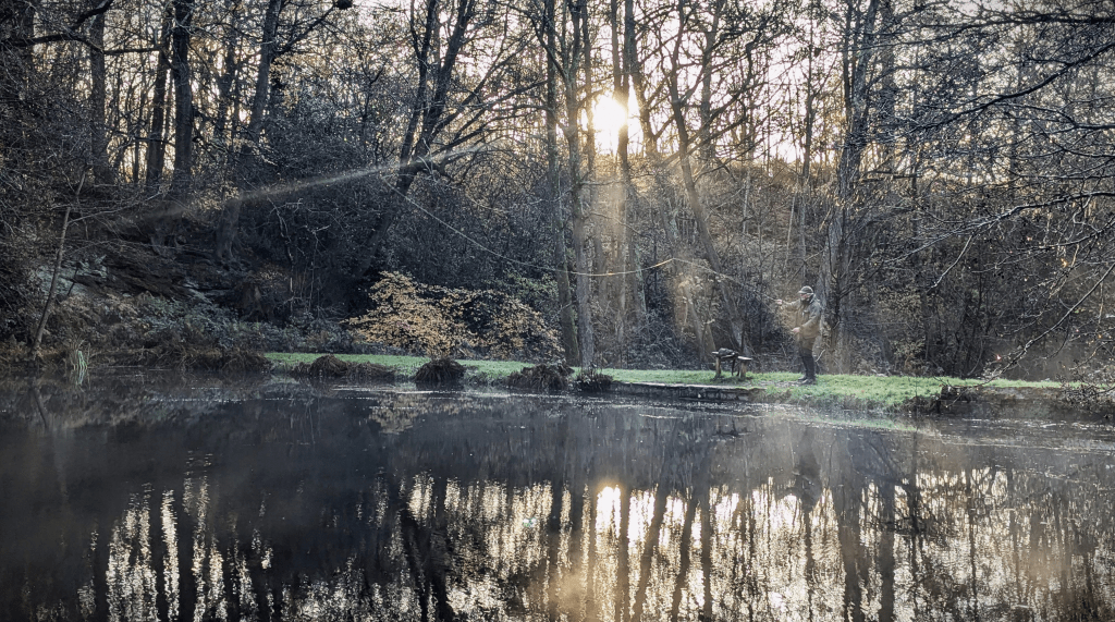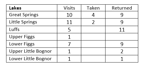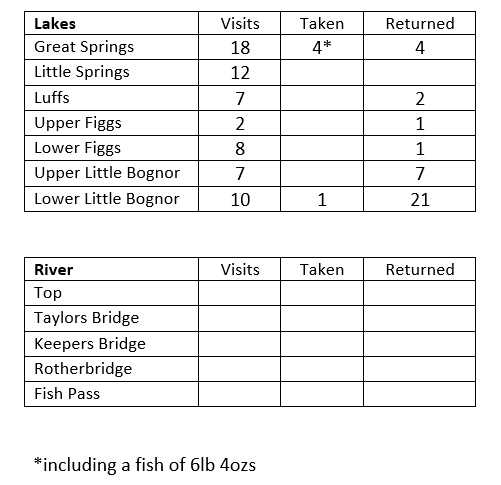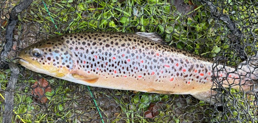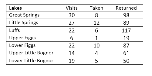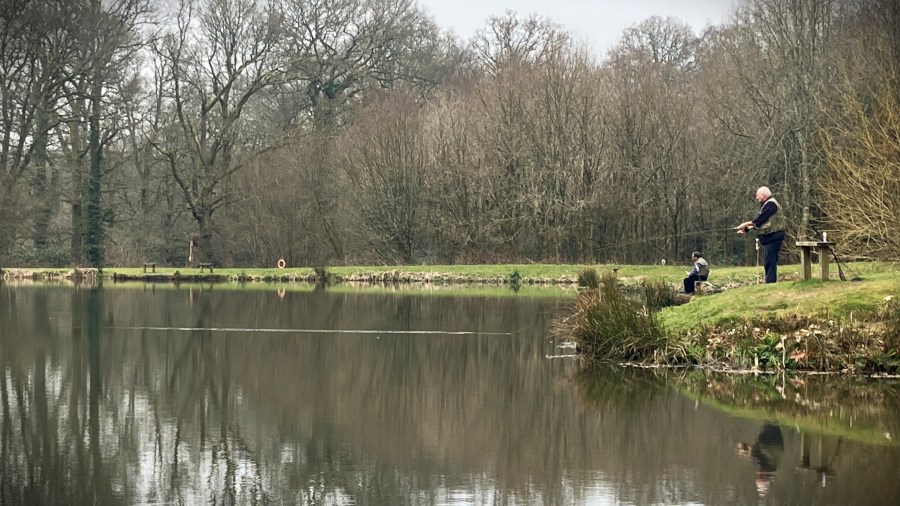 “On Saturday I took my grandson to Great Springs for some casting practice and hopefully a trout. He caught two fish before the cold wind made casting too difficult for him. I visited Great Springs again late Sunday afternoon and was surprised to have the lakes to myself. I fished into the wind over deep water with a weighted Gold Ribbed Hares Ear and caught three trout in excellent condition.