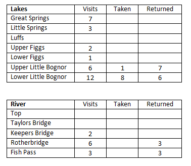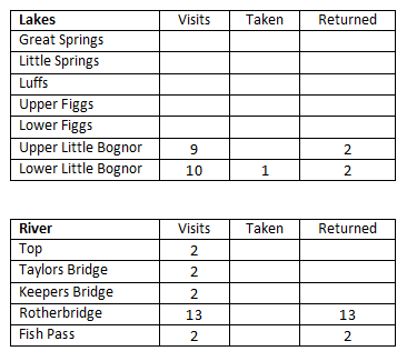 On the river fish were taking deep sunk nymphs last weekend. After the recent heavy rain they should be hungry and feeding well. Search for the trout under the trees and beside streamer weed beds.